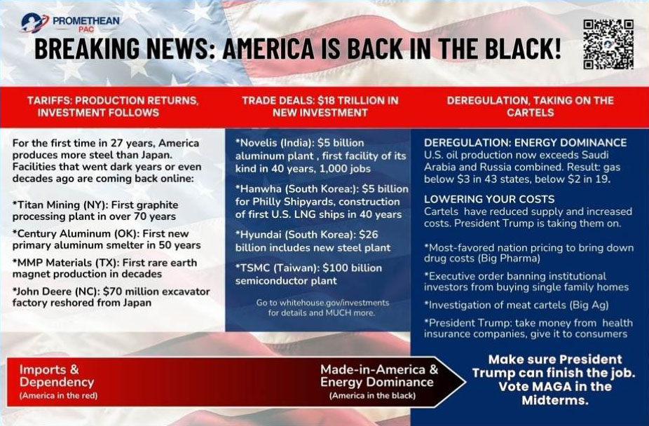 For the first time in 27 years, America produces more steel than Japan. The first new aluminum smelter in 50 years is going up in Oklahoma. The first graphite processing plant in over 70 years is opening in New York. TSMC is building a $100 billion semiconductor plant. Hyundai is investing $26 billion. And that's just the beginning.