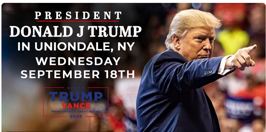 Trump in Uniondale, NY, Wednesday, September 18, 7pm Eastern